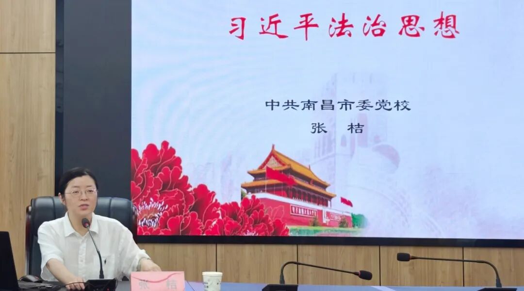 南昌市委党校管理与法学教研室张桔副教授围绕习近平法治思想进行专题授课,系统深入地解读了习近平法治思想的重大意义、核心要义及科学方法,阐释了习近平法治思想的精髓要义和精神实质。