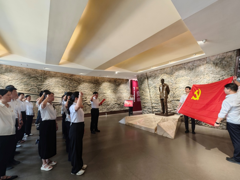 7月15日下午,全院干警前往陈云工作车间开展党性教育,全体党员现场重温入党誓词,大家认真聆听陈云同志的生平事迹与奋斗历程,仔细观摩车间内陈列的珍贵文物、历史照片。