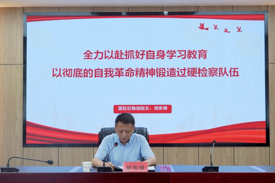 派驻纪检组组长胡宪锋以《全力以赴抓好自身学习教育,以彻底的自我革命精神锻造过硬检察队伍》为主题,剖析了当前违反中央八项规定精神的主要问题类型和表现,并对违规收送礼品礼金、违规吃喝问题作重点讲解。