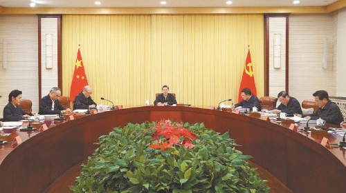 会议认为,党的二十届四中全会是在向第二个百年奋斗目标进军的新征程上举行的一次十分重要的会议。习近平总书记在全会上的重要讲话,阐述了一系列方向性、根本性重大问题,为我们做好工作指明了前进方向、提供了根本遵循。全会审议通过的《中共中央关于制定国民经济和社会发展第十五个五年规划的建议》,对未来五年发展作出顶层设计和战略擘画,是乘势而进、接续推进中国式现代化的又一次总动员、总部署。