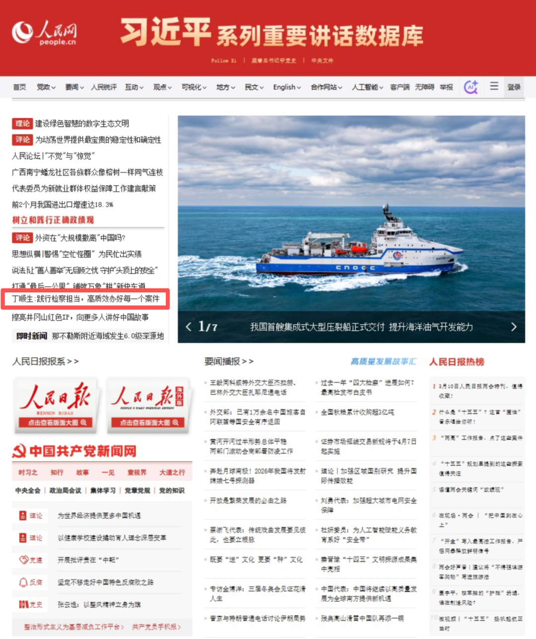 2026年是“十五五”规划开局之年。检察机关作为服务在法治轨道上全面建设社会主义现代化国家的重要力量,将如何助力“十五五”开好局、起好步?人民网记者专访了全国人大代表,江西省人民检察院党组书记、检察长丁顺生。