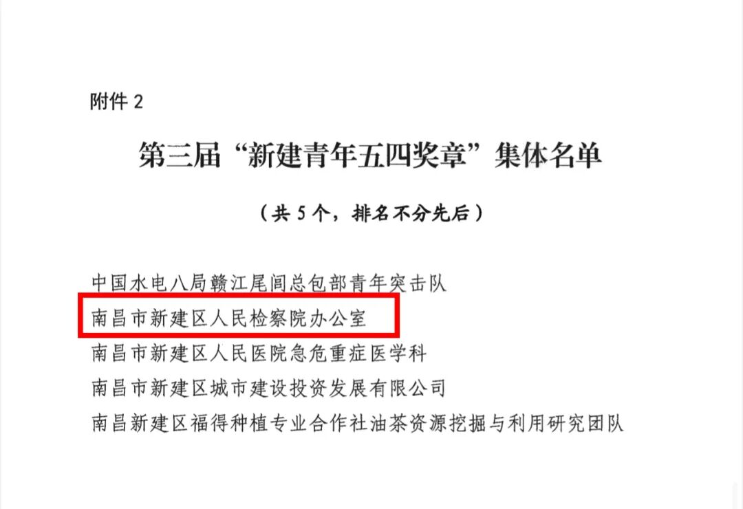 热烈祝贺 我院办公室荣获 第三届 “新建区青年五四奖章”集体
