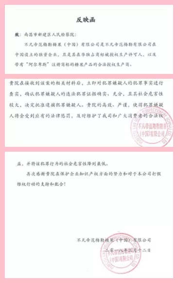 近日,新建区人民检察院受理了一起关于假冒阿尔卑斯商标进行加工生产糖果的案件。该案起源于不凡帝意大利(中国)公司给新建区公安分局提交的一封信。