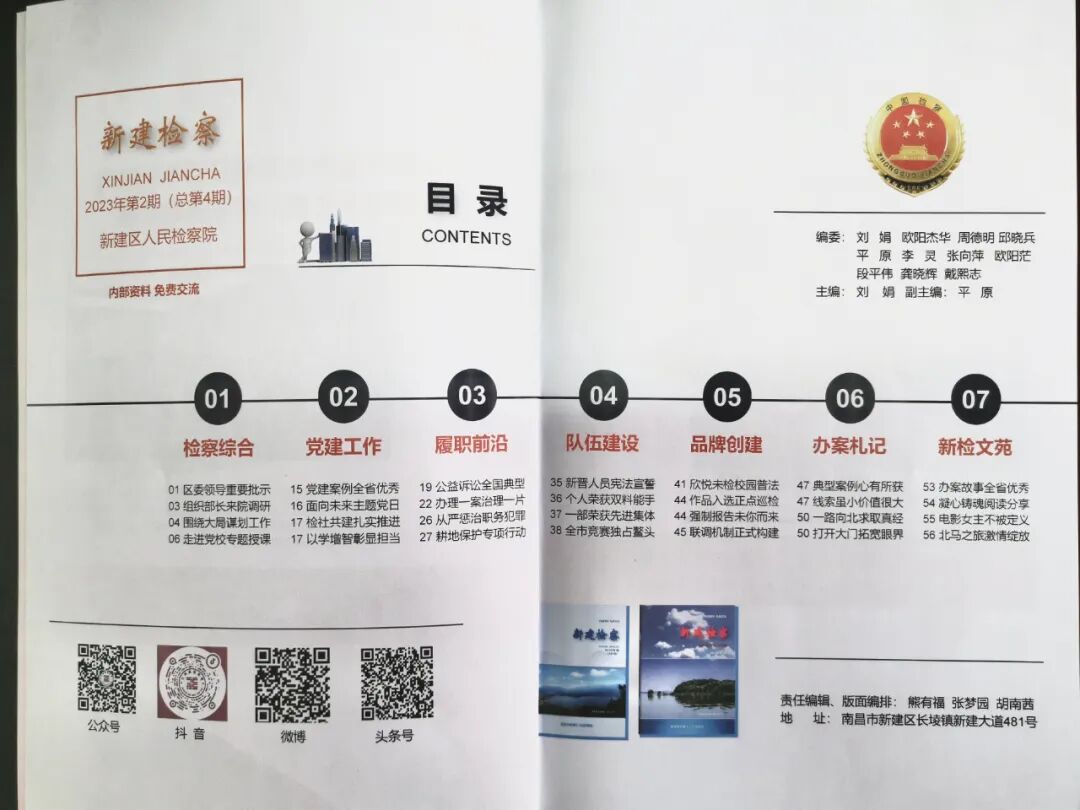 如果说“年话”“文演”别开生面,那么《新建检察》则别有洞天。已出刊四期的《新建检察》杂志,记录前沿履职、展示特色亮点、演绎队伍风采,凝结了新检人行使宪法法律职责的价值观念、创新思维、道德准则、精神风范等一系列精神成果,是检察文化的综合呈现。
