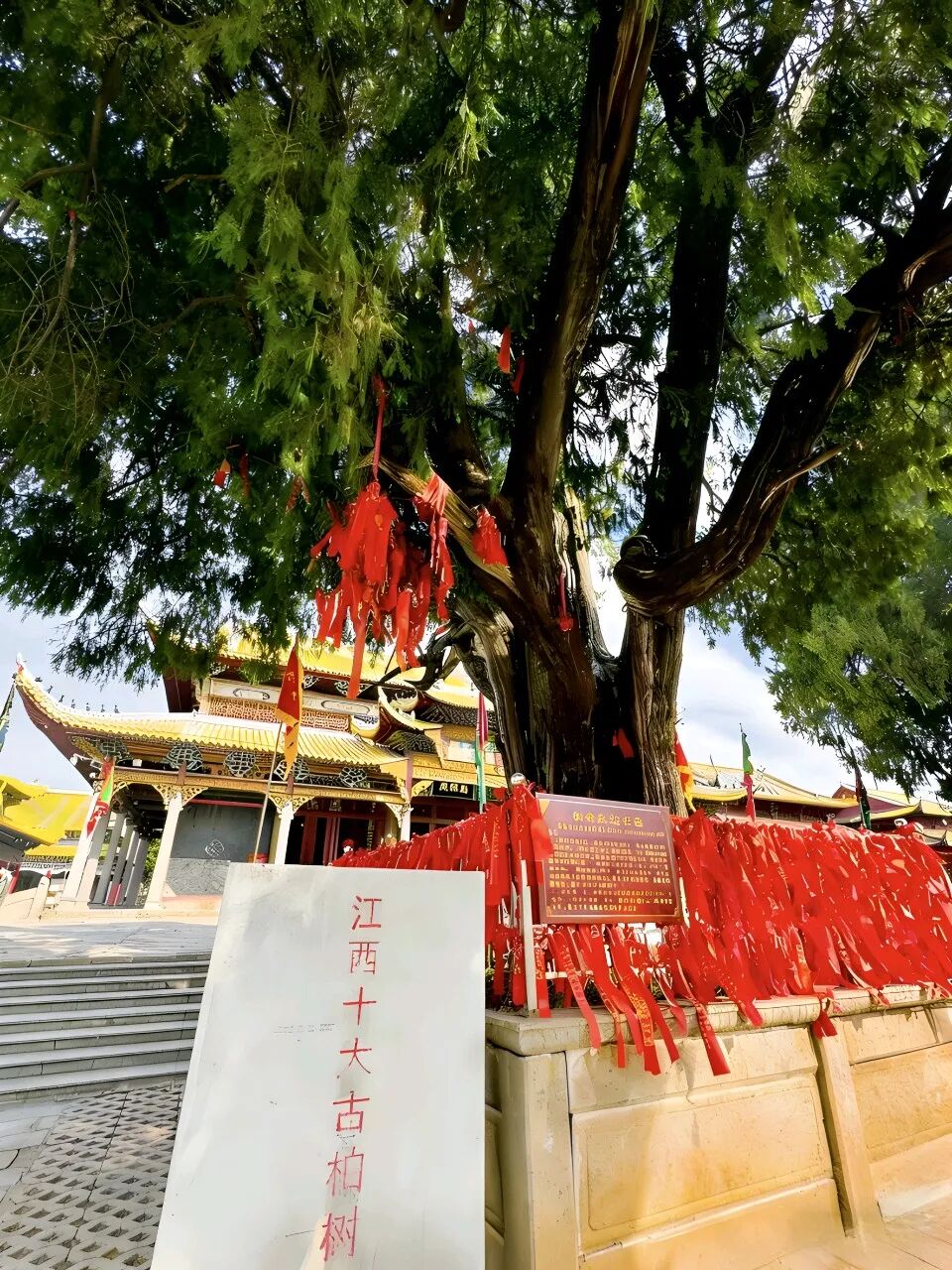 每一棵古树名木都是一个完整的微型生态系统,为无数动植物提供栖息地,还能净化空气、保持水土。古树名木更是一部活的历史书,年轮里记录着气候变迁,树冠下发生过历史故事,根系间维系着完整的生态系统,它们还是文化的传承者。比如新建区西山万寿宫有一棵“瘗剑柏”,树龄约1700年。相传,这棵柏树是东晋道士许逊为镇压危害百姓的蛟龙,种植于万寿宫主庭门前,将镇蛟宝剑埋于树下,故此树被称为“瘗剑柏”。