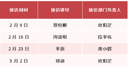 为更好地把握新时代信访工作的重要原则和具体要求,深入践行“以人民为中心”的发展思想,不断提升检察信访工作能力,以高度的政治自觉、法治自觉和检察自觉抓好《信访工作条例》的贯彻落实,努力推动信访工作再上新台阶,现将我院2月份“检察长接访日”安排公告如下: