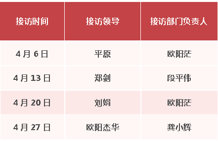 为更好地把握新时代信访工作的重要原则和具体要求,深入践行“以人民为中心”的发展思想,不断提升检察信访工作能力,以高度的政治自觉、法治自觉和检察自觉抓好《信访工作条例》的贯彻落实,努力推动信访工作再上新台阶,现将我院4月份“检察长接访日”安排公告如下: