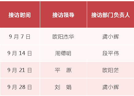 为更好地把握新时代信访工作的重要原则和具体要求,深入践行“以人民为中心”的发展思想,不断提升检察信访工作能力,以高度的政治自觉、法治自觉和检察自觉抓好《信访工作条例》的贯彻落实,努力推动信访工作再上新台阶,现将我院9月份“检察长接访日”安排公告如下: