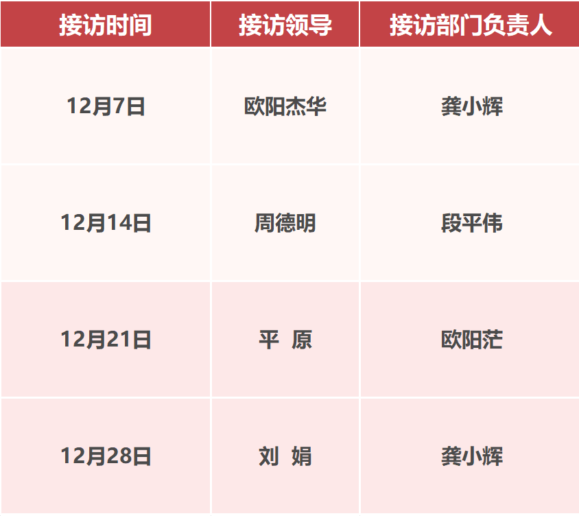 为更好地把握新时代信访工作的重要原则和具体要求,深入践行“以人民为中心”的发展思想,不断提升检察信访工作能力,以高度的政治自觉、法治自觉和检察自觉抓好《信访工作条例》的贯彻落实,努力推动信访工作再上新台阶,现将我院12月份“检察长接访日”安排公告如下: