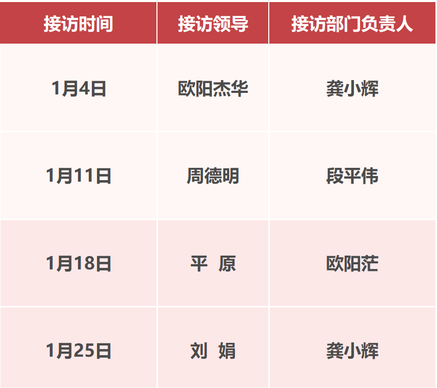 为更好地把握新时代信访工作的重要原则和具体要求,深入践行“以人民为中心”的发展思想,不断提升检察信访工作能力,以高度的政治自觉、法治自觉和检察自觉抓好《信访工作条例》的贯彻落实,努力推动信访工作再上新台阶,现将我院1月份“检察长接访日”安排公告如下: