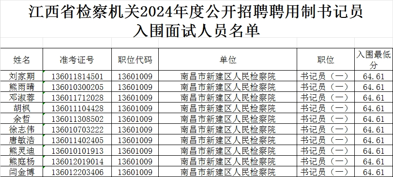 现将江西省检察机关2024年度公开招聘聘用制书记员面试有关事项公告如下: