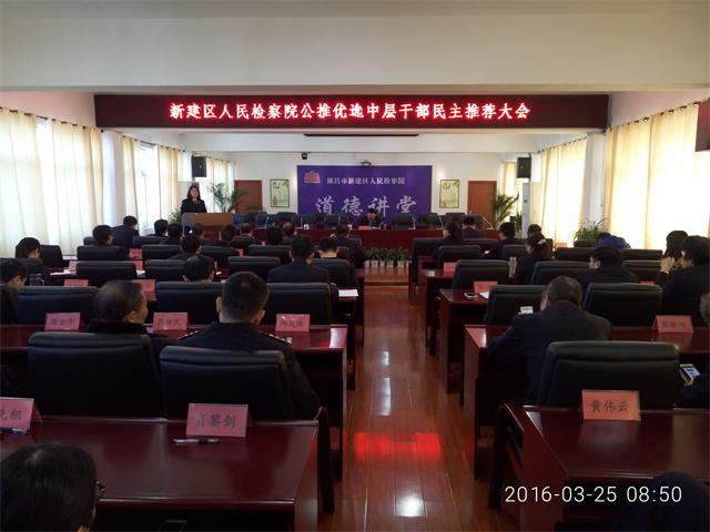 为进一步深化干部人事制度改革,选优配强机关中层领导干部,更好地推进创先争优和检察业务工作,今年3月份以来,新建区检察院争取组织部、政法委和纪委的大力支持,启动了中层干部公推优选暨交流竞岗工作。日前,6名中层正职和6名中层副职干部正式走上新的工作岗位。