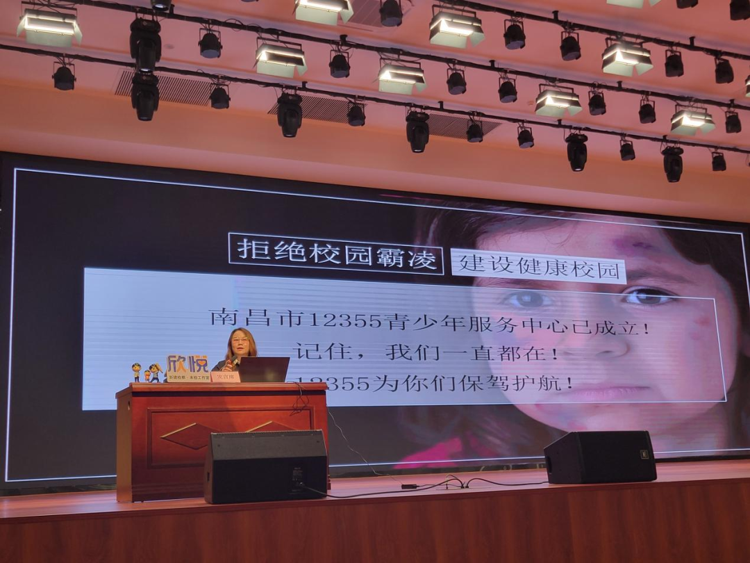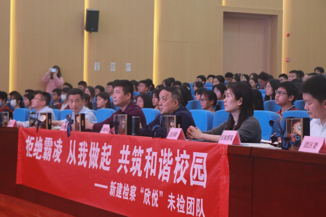此次活动邀请了教体、妇联、团委相关领导出席。新建一中高级教师、国家二级心理咨询师李玲玲,“欣悦”未检法治宣讲团讲师、新建区检察院干警李文吉,省人大代表、市政协委员、市新联会副会长陈虹,分别从心理、法律、社会层面讲述如何防范校园欺凌。