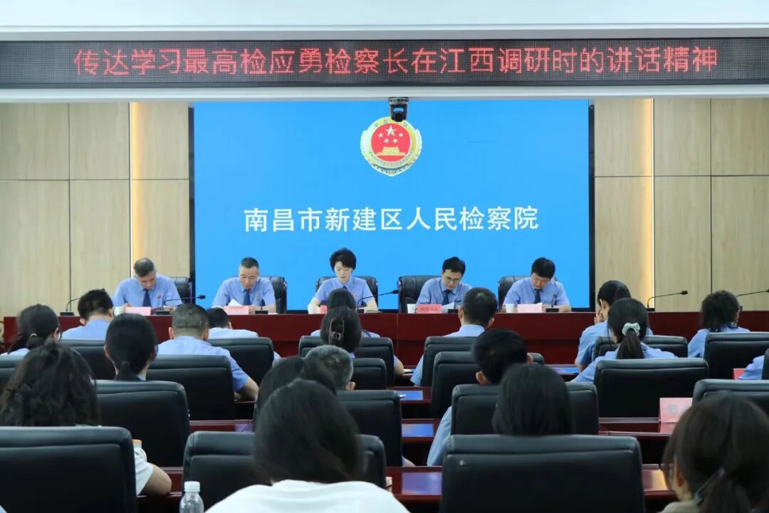5月27日下午,新建区人民检察院召开全院干警大会,传达学习最高人民检察院党组书记、检察长应勇在江西调研时的讲话精神,结合省检察院党组(扩大)会议工作要求,研究部署贯彻落实举措。