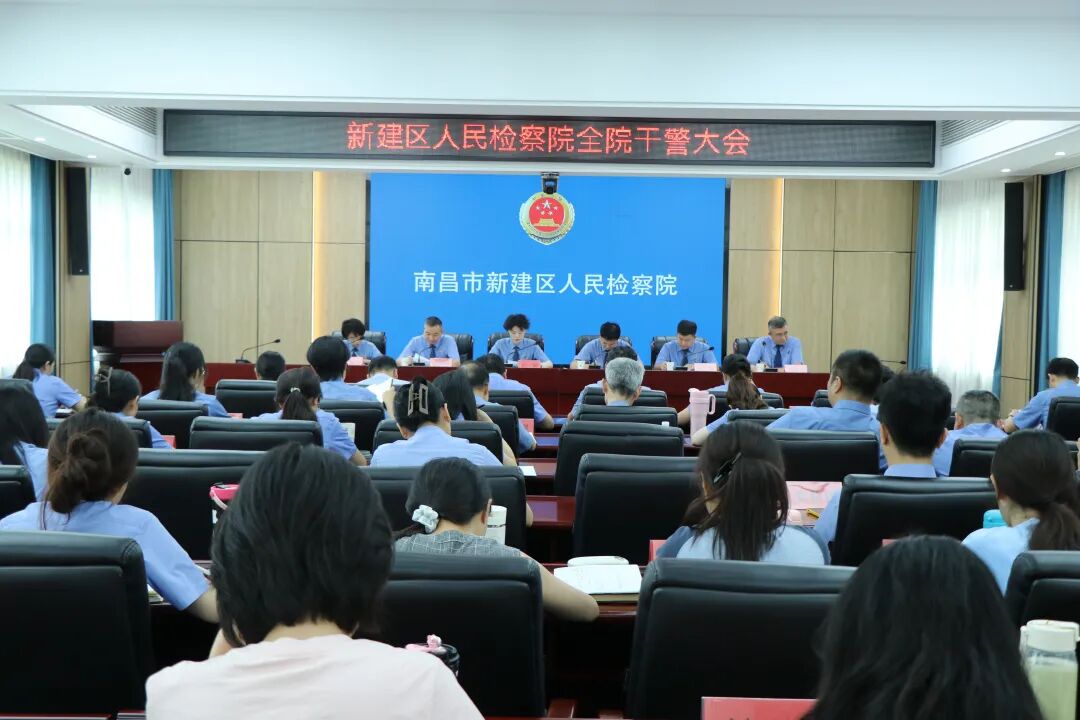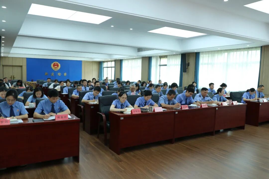 8月15日上午,新建区人民检察院召开会议,传达学习最高检大检察官研讨班会议精神,省委十五届六次全会、市委十二届八次全体(扩大)会议、区委二届九次全体(扩大)会议精神;全面总结分析上半年工作情况、 安排部署下半年重点工作。