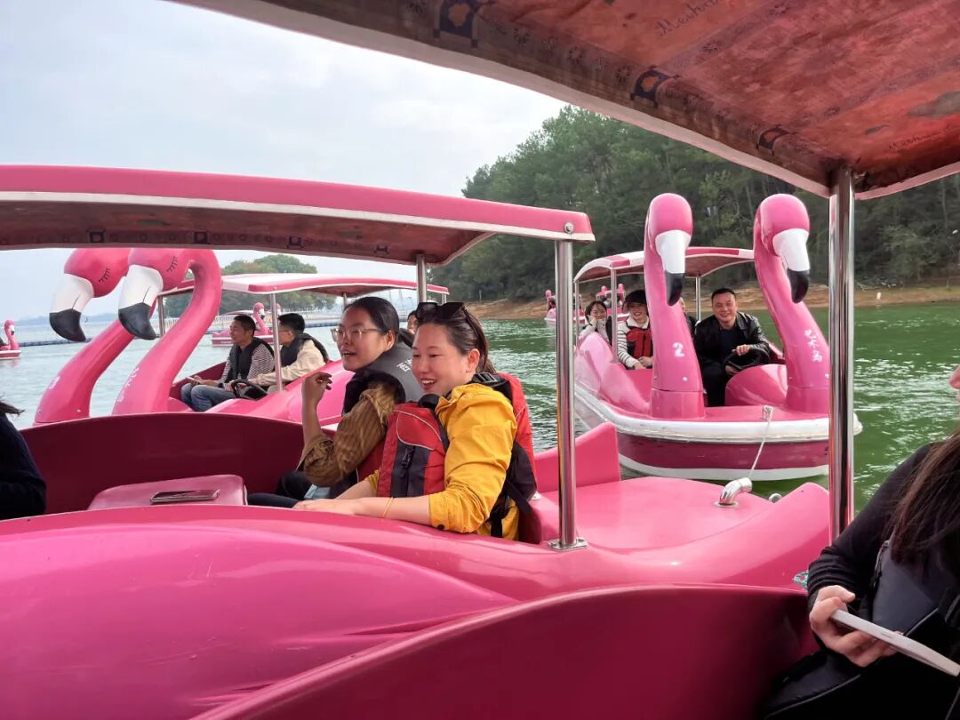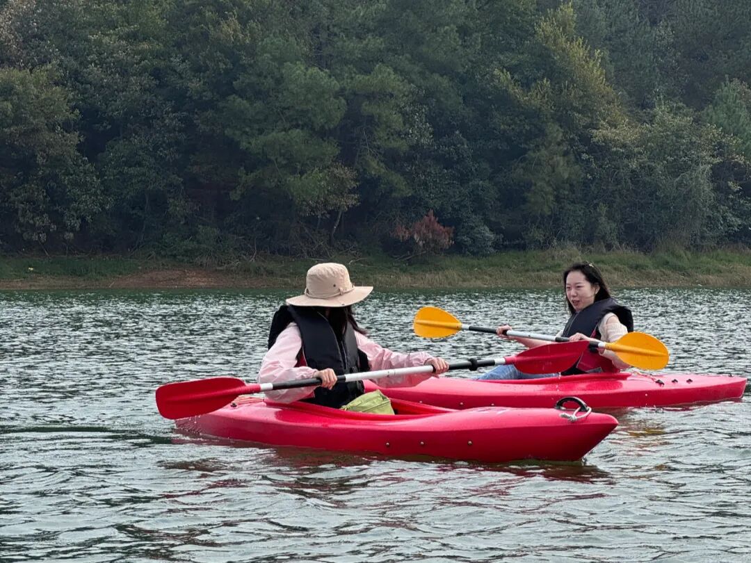 在庐山西海梦幻岛,干警们体验了游船、皮划艇等项目,大家团结协作、奋力划桨,山水之间洋溢着欢声笑语。