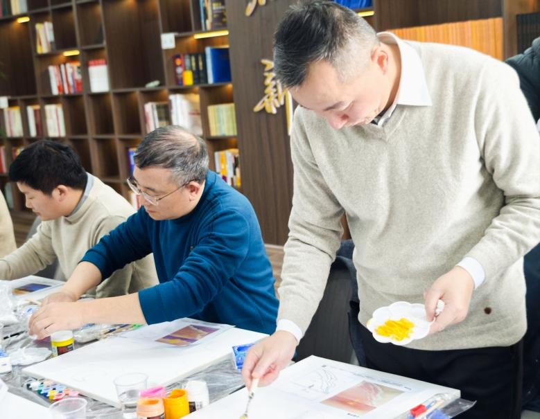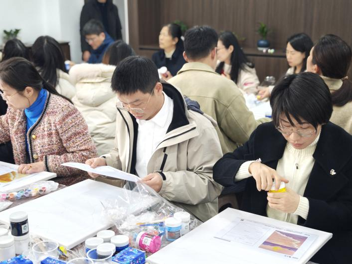 专业老师介绍了石英肌理画制作方法,干警们发挥想象力,通过笔触、刮刀、刻痕、堆积等呈现出丰富多彩的肌理效果,描绘出一幅幅充满灵感和创造力的画作。