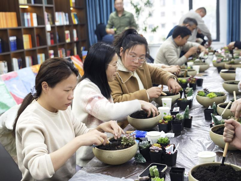 随后是艺盆景创作活动,干警们挑选好自己喜欢的多肉植物,发挥创意,制作属于自己的个性化作品。小小的盆栽,一土一铲都盛满了对美好生活的热爱与向往。
