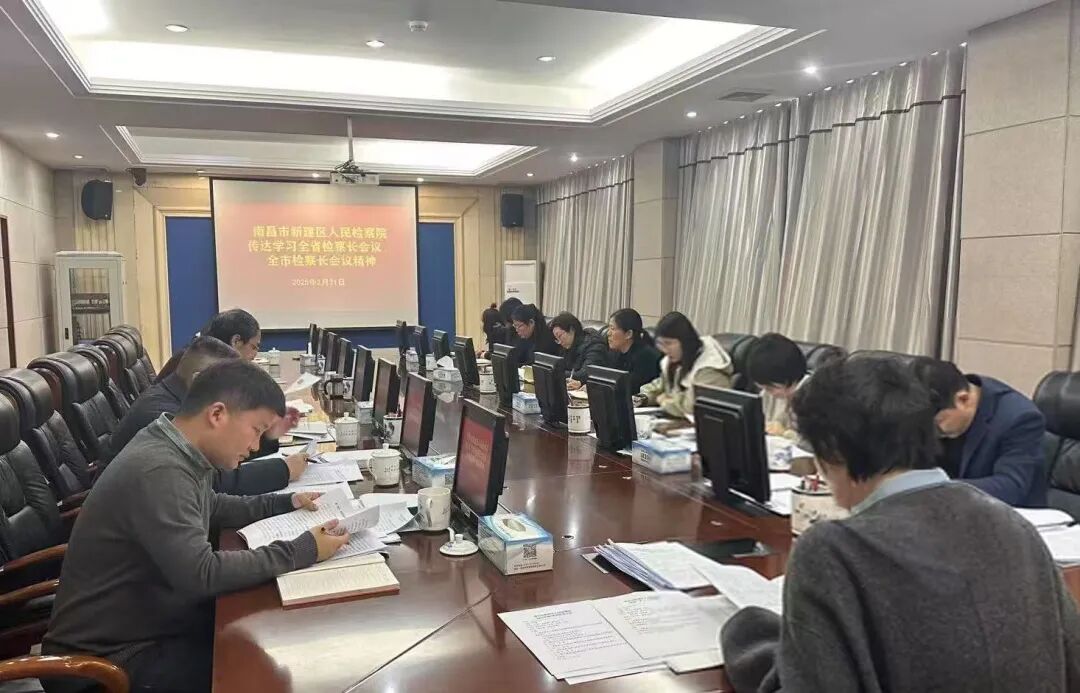 2月21日上午,新建区人民检察院召开党组(扩大)会,传达学习全省检察长会议、全市检察长会议精神,研究贯彻落实举措。党组书记、检察长刘娟主持会议并讲话,院班子成员、各部门负责人、各条线负责人参加会议。