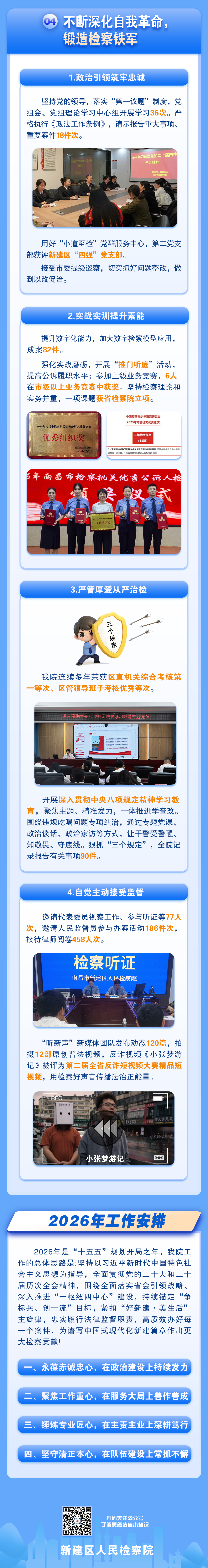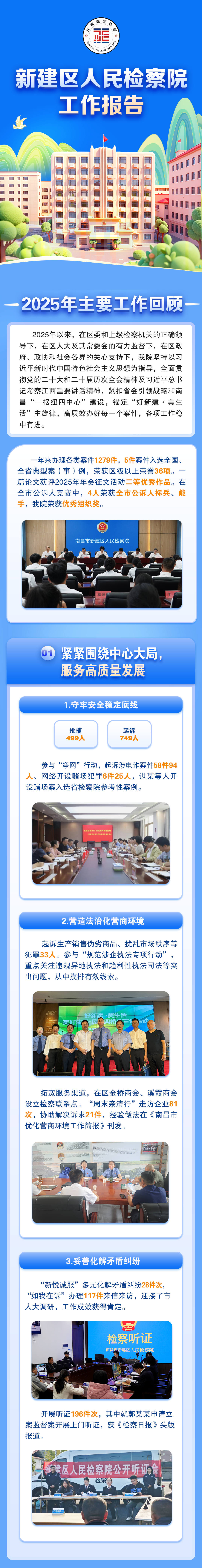 2026年1月8日上午,在新建区第二届人民代表大会第七次会议上,受新建区检察院党组书记、检察长刘娟委托,区检察院党组副书记、分管日常工作的副检察长平原作检察工作报告。