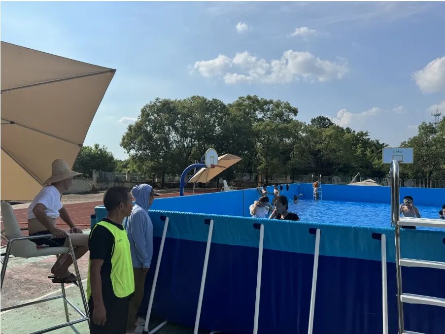 这一创新举措也让家长们吃下了“定心丸”。家长胡涛涛对此赞不绝口:“这个活动太贴心了!孩子们爱玩水是天性,学校设立可拆卸游泳池,给他们提供了一个安全释放天性的好去处,我打心底里觉得好!”
