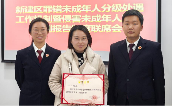 “欣悦”未检做法:立足检察职能,高质效办好每一起涉未成年人案件。针对未成年人罪错行为,在依法规范适用附条件不起诉制度的同时,新建区检察院联合区公安、教体局等10部门共同出台《新建区罪错未成年人分级处遇工作机制》,建立轻重有别、逐渐递进的矫治体系,做好附条件不起诉的“后半篇文章”。